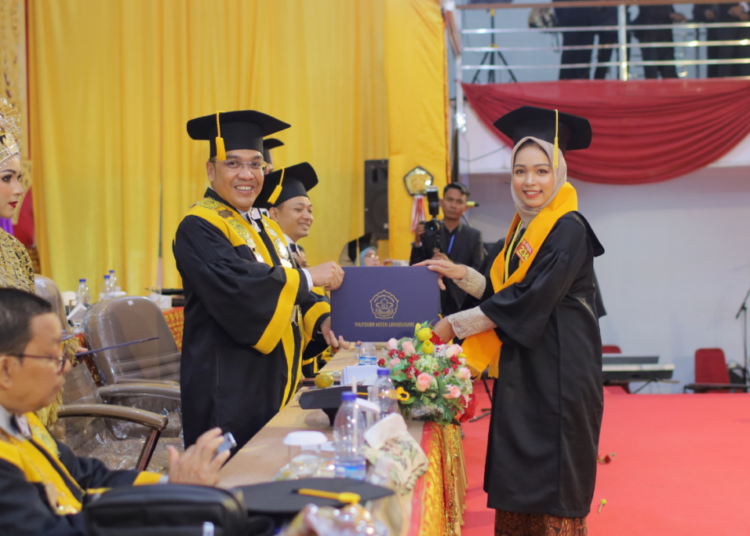 “Jumlah lulusan Teknik Kimia sebanyak 122 orang lulusan, Teknik Elektro 204 orang lulusan, Teknik Mesin 137 orang lulusan, Tata Niaga 257 lulusan, Teknologi Informasi dan Komputer 97 orang lulusan dan Teknik Sipil 108 lulusan,” terangnya