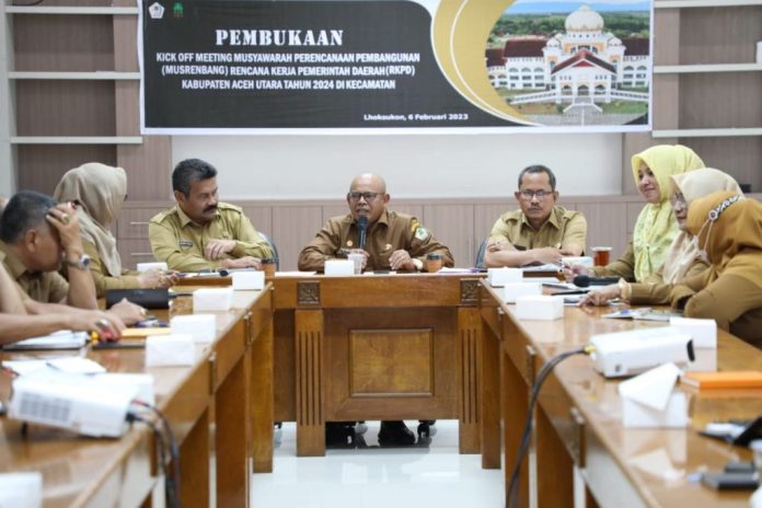 LHOKSUKON – JALANTENGAH.CO, Pemerintah Kabupaten Aceh Utara menggelar kegiatan kick off meeting menjelang pelaksanaan Musyawarah Perencanaan Pembangunan (Musrenbang) Rencana Kerja Pemerintah Daerah (RKPD) 2024.