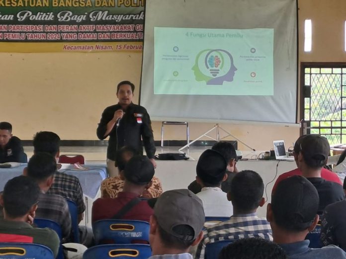 ACEH UTARAJALANTENGAH.CO, Badan Kesatuan Bangsa dan Politik (Kesbangpol) Kabupaten Aceh Utara memberikan pendidikan politik kepada masyarakat guna menyukseskan pelaksanaan Pemilu serentak tahun 2024 mendatang.