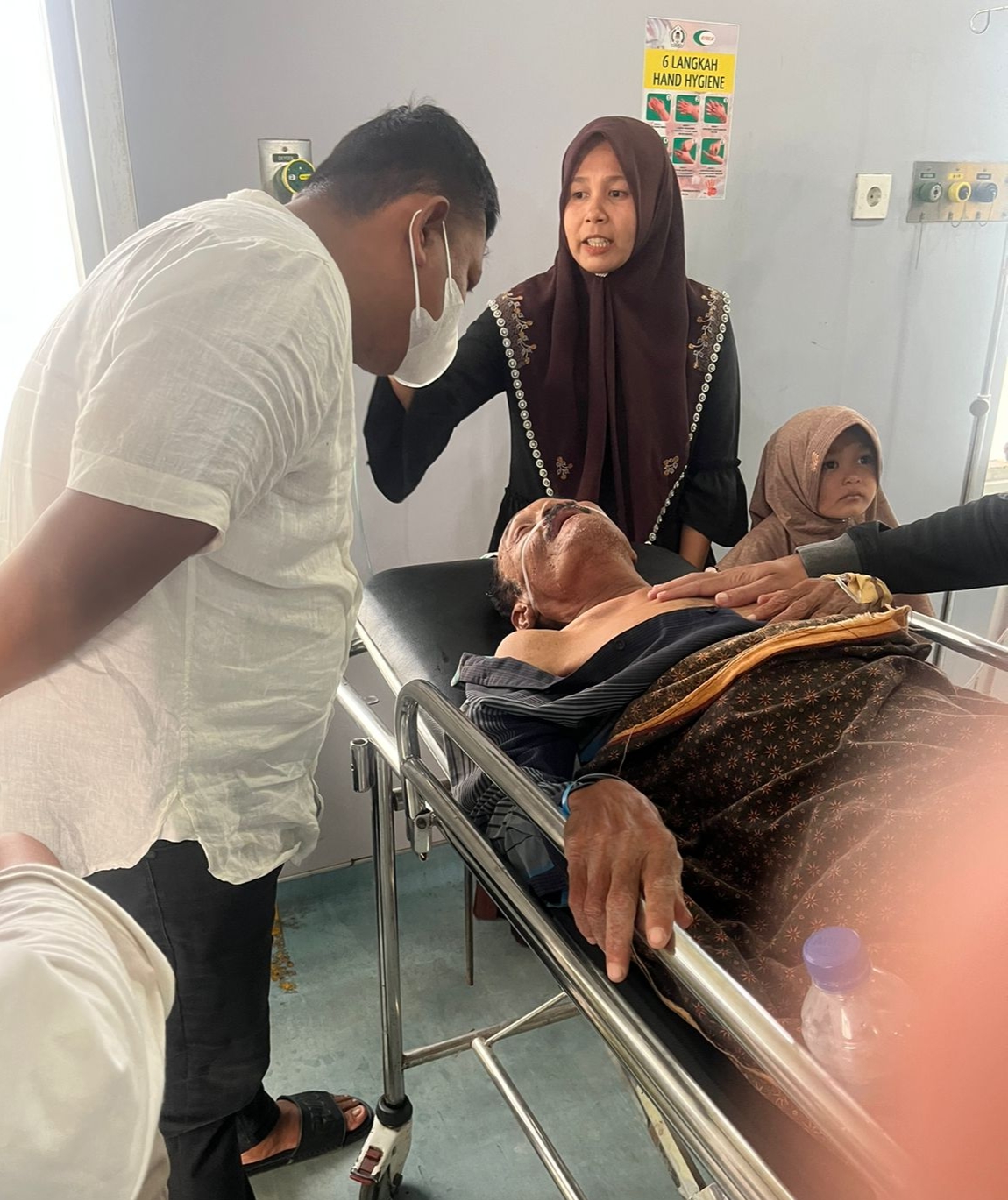 “Meski masih sadar diri, namun tubuhnya sangat lemas, tulang pinggangnya patah sehingga sama sekali tidak bisa berjalan”, sebut Ilham.