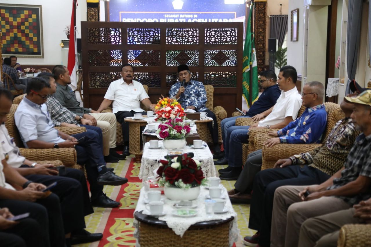 Penjabat Bupati Aceh Utara yang diwakili Asisten I Setdakab Dayan Albar, S.Sos, MAP, menyampaikan apresiasi atas kunjungan Tim KONI Pusat, KONI Aceh, dan Dinas Pora Aceh, untuk meninjau langsung lokasi arena pertandingan PON 21.