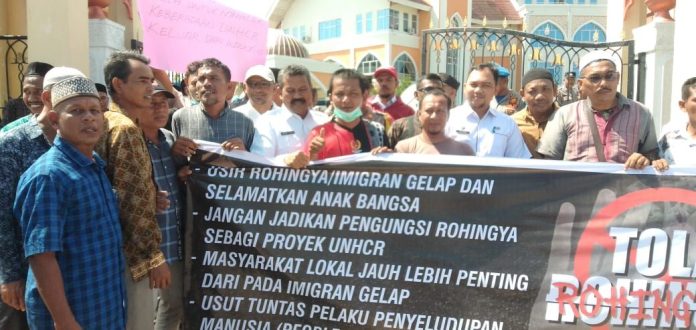 Mereka menuntut keras agar para pengungsi lintas negara, yakni imigran Rohingya, agar jangan ada yang ditampung di wilayah Kabupaten Aceh Utara.