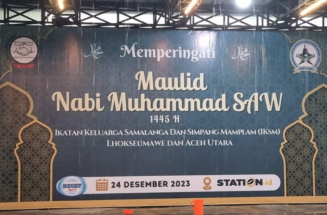 JALANTENGAH.CO I LHOKSEUMAWE, Paguyuban masyarakat asal Samalanga dan Simpang Mamplam di Lhokseumawe dan sekitarnya yang diberi nama Ikatan Keluarga Samalanga – Simpang Mamplam (IKSM) memperingati Maulidir Rasul 1445 H sekaligus silaturrahmi paguyuban, Ahad (24/12/2023).