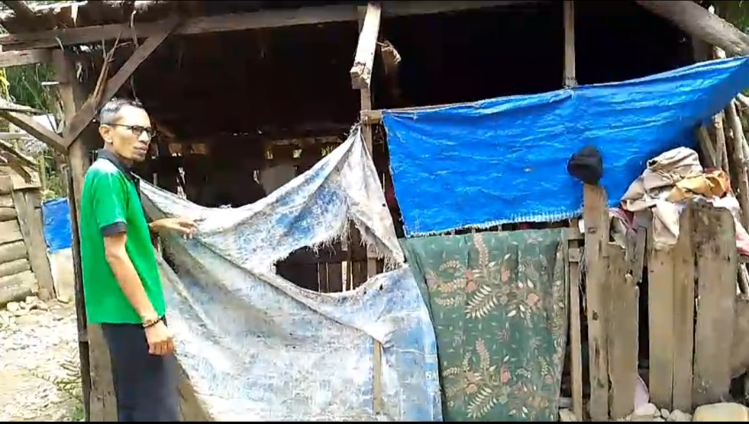 Kondisi bagian rumah gubuk tempat Suryani menetap bersama ketiga anak yatimnya di dusun bukit sandi, pulo meuria geurudong pase Aceh Utara. (Foto: JT – 1/4/2024)