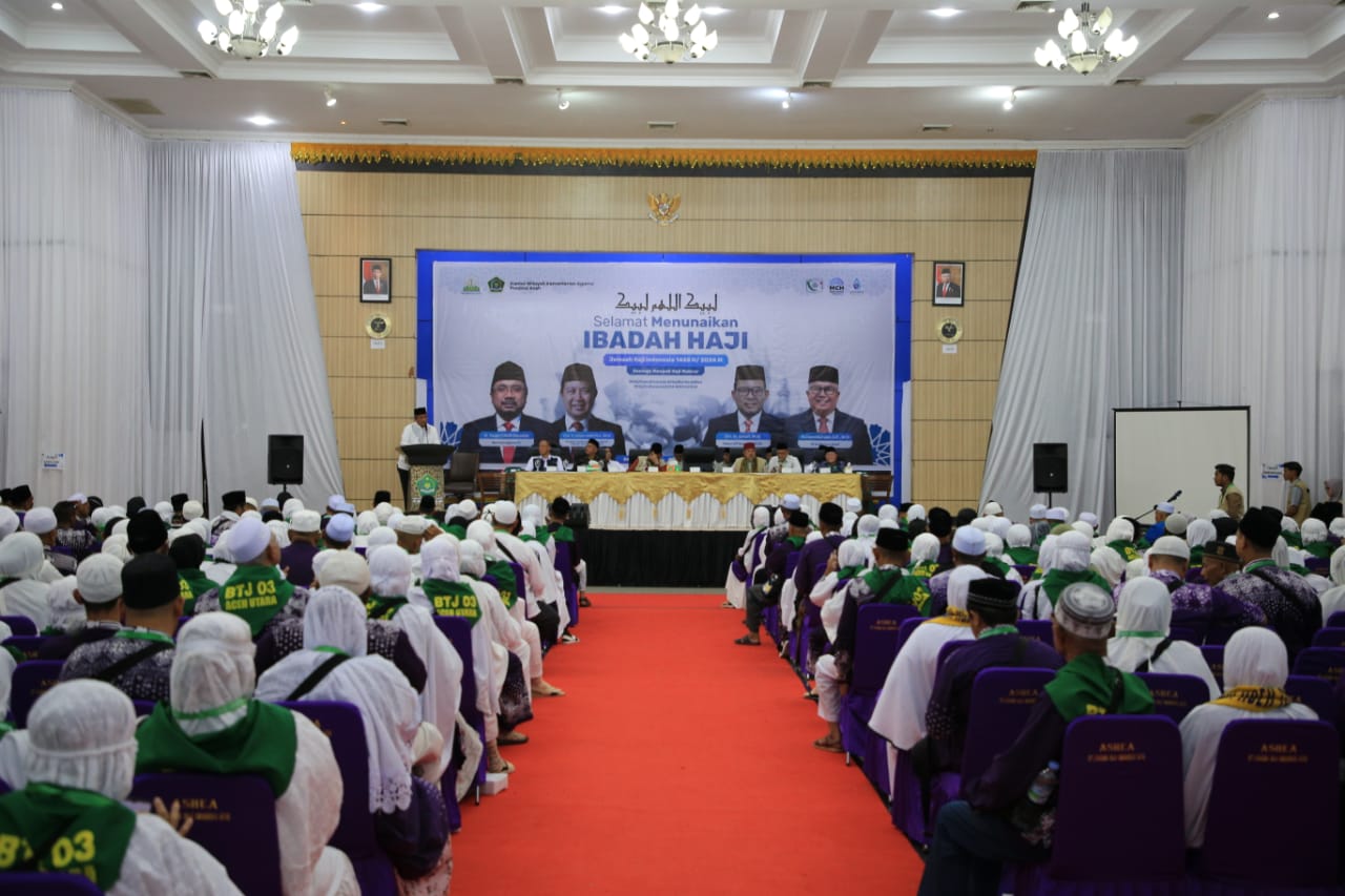 Pelepasan ratusan jamaah haji asal Aceh Utara di asrama haji Banda Aceh. (Foto: ist)