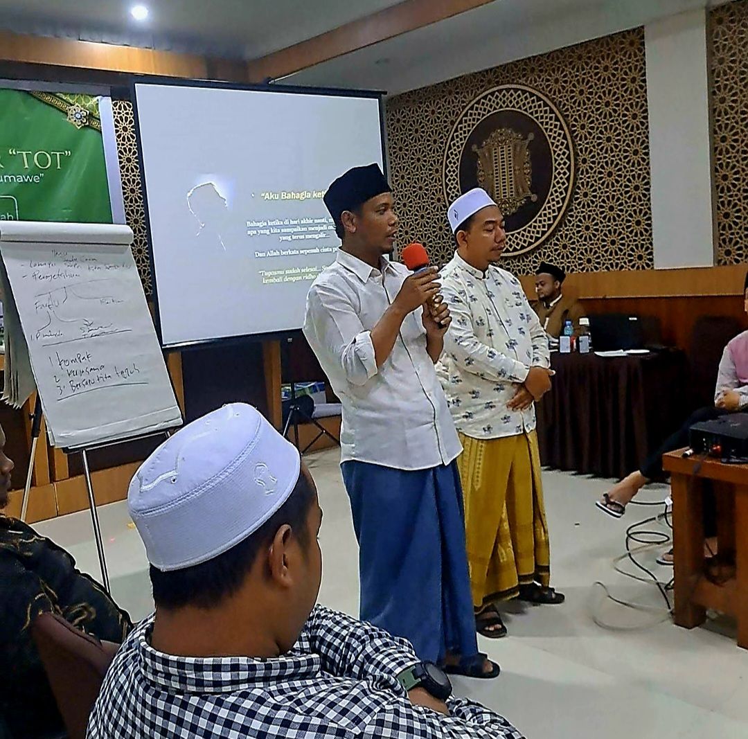 Peserta lain, Tgk Muhammad Syahril Husni dengan penuh emosional juga ikut memompa semangat rekan-rekannya sesama peserta TOT agar tetap istiqamah dengan komitmen yang sudah diikrarkan dalam kelas pelatihan.