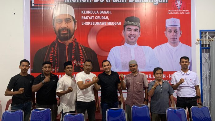 Didampingi oleh ketua komando mualem pusat, Amiruddin beserta jajarannya turut melakukan silaturrahmi dengan Bacalon Walikota Lhokseumawe Dr. Sayuti Abubakar, SH.,MH di posko pemenangan di Kota Lhokseumawe, (6/8).