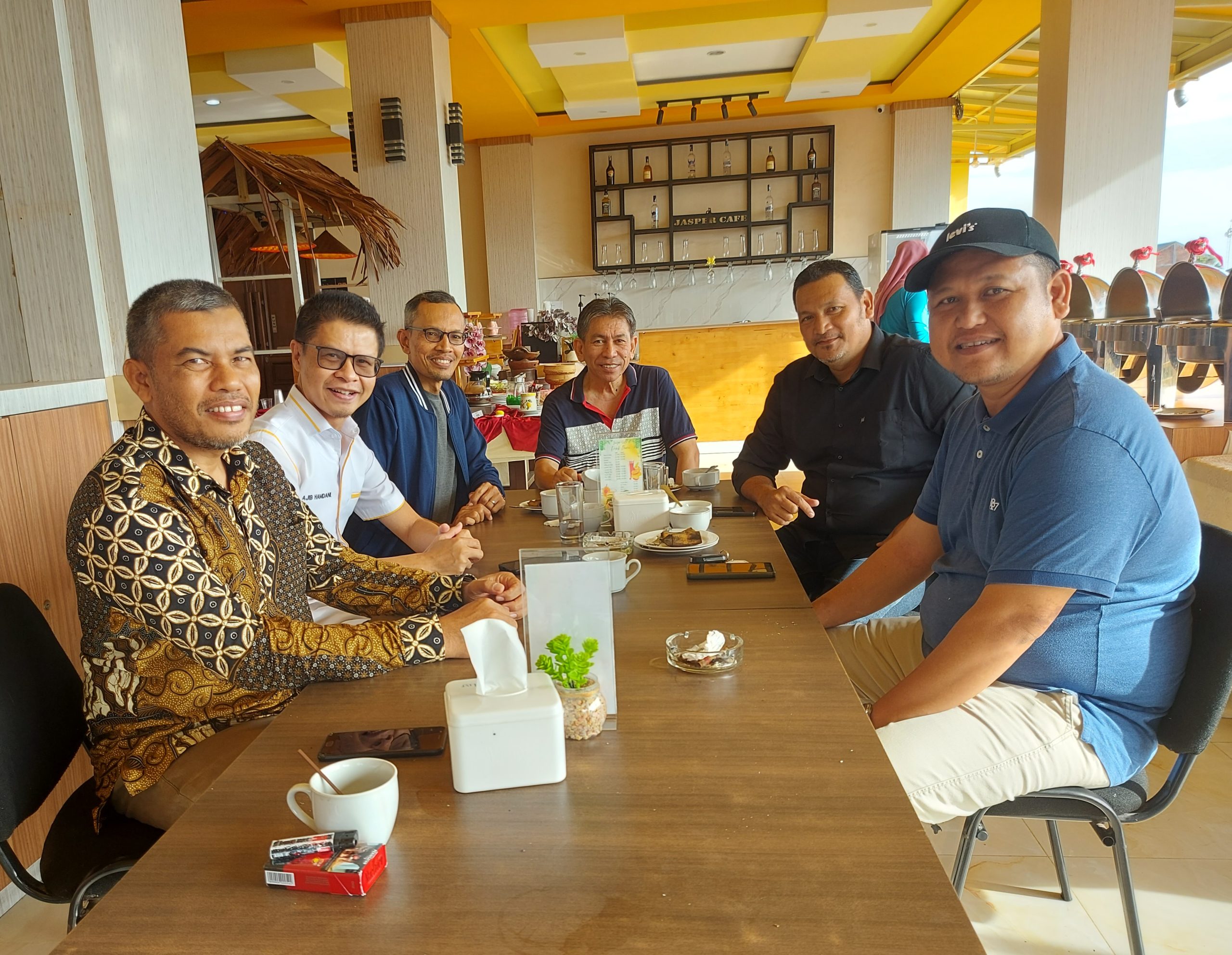 Coffee morning pengurus BPP HIPKA Ajib Hamdani dan Ketua HIPKA Aceh Zulfikar Lidan dengan sejumlah pengurus BPD di Banda Aceh. (Foto: jalantengah.net)