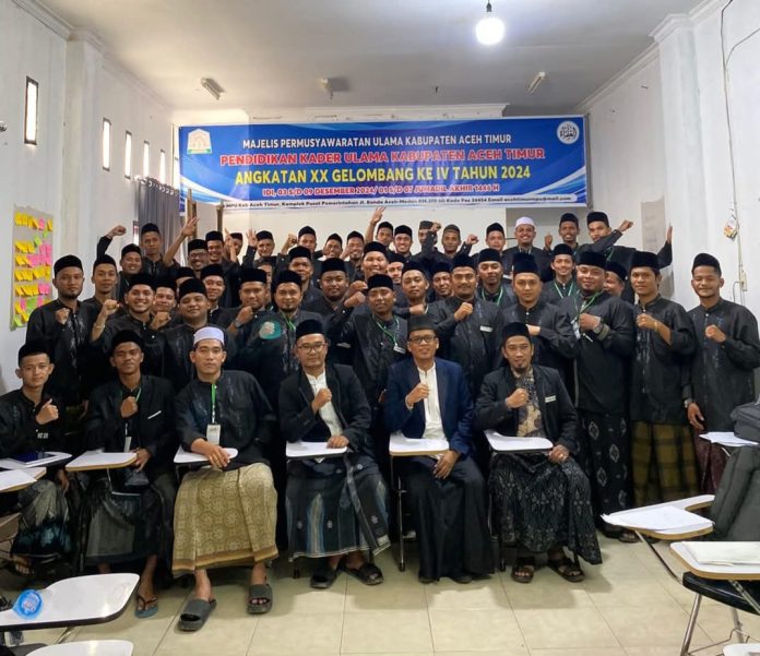 JALANTENGAH.CO I ACEH TIMUR – Sebanyak 50 ulama muda dari lintas dayah dan kecamatan di Aceh Timur mengikuti Pendidikan Kader Ulama (PKU) yang digelar Majelis Permusyawaratan Ulama Aceh Timur, mulai 3 – 9 Desember 2024 di aula sekretariat MPU setempat.