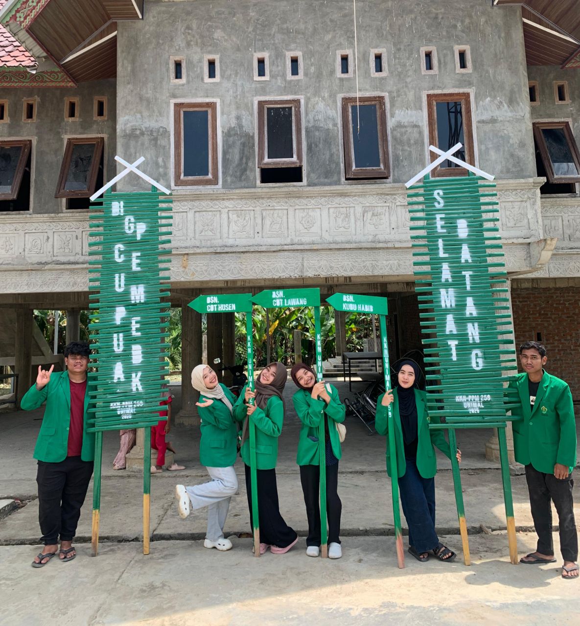 JALANTENGAH.CO I BAKTYA – Sejumlah mahasiswa Universitas Malikussaleh yang tengah melakukan Kuliah Kerja Nyata (KKN) PPM membuat gapura serta plang nama Dusun di Gampong Cempeudak, Kecamatan Baktiya, Kabupaten Aceh Utara.