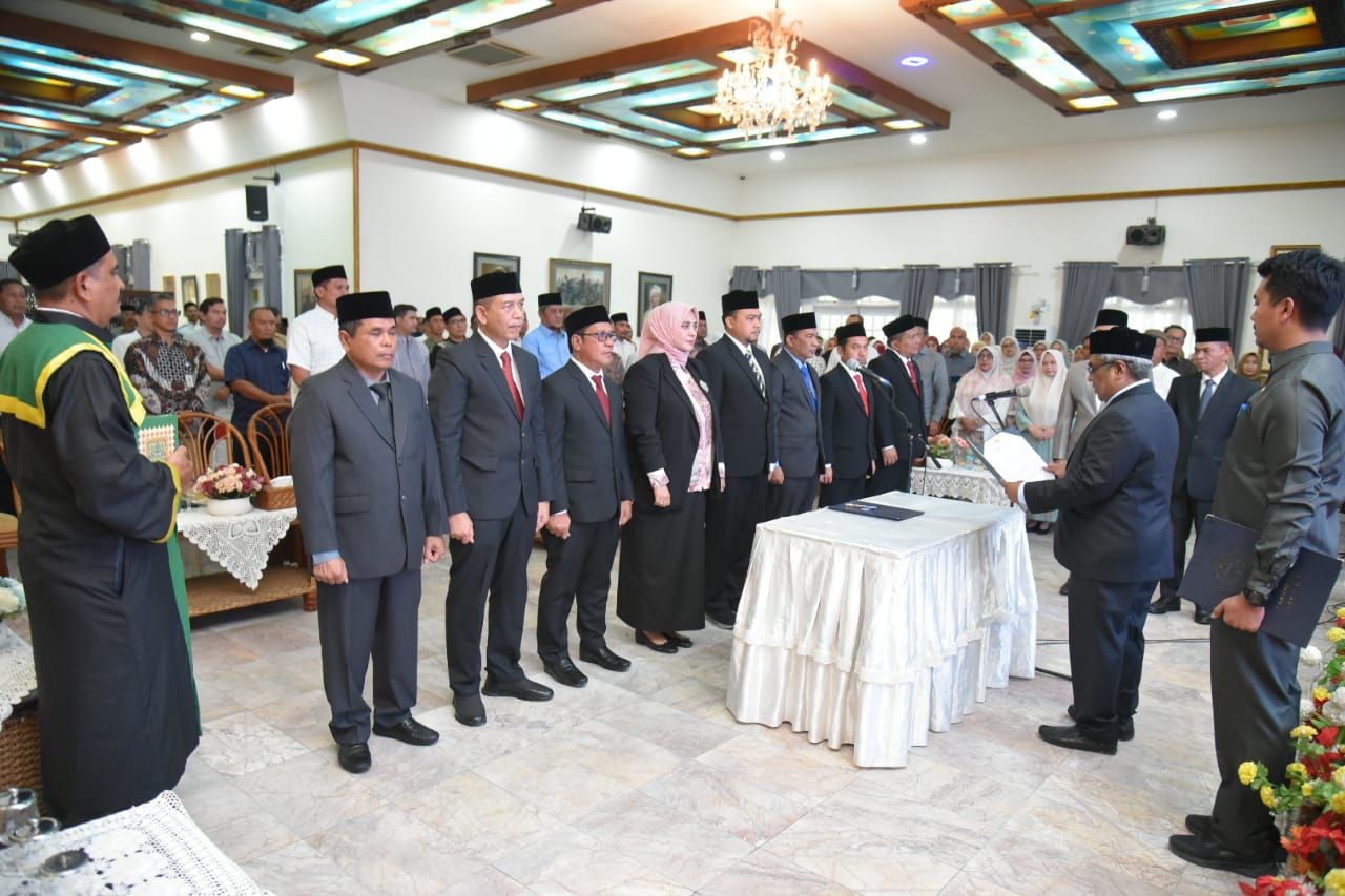 JALANTENGAH.CO I LHOKSUKON – Penjabat Bupati Aceh Utara Dr Mahyuzar, M.Si, melantik dan mengambil sumpah delapan pejabat pada Jabatan Pimpinan Tinggi (JPT) Pratama atau setara Eselon II yang menduduki jabatan Kepala Dinas, Badan, dan Asisten, di Pendopo Bupati, Jumat petang (7/2/2025).