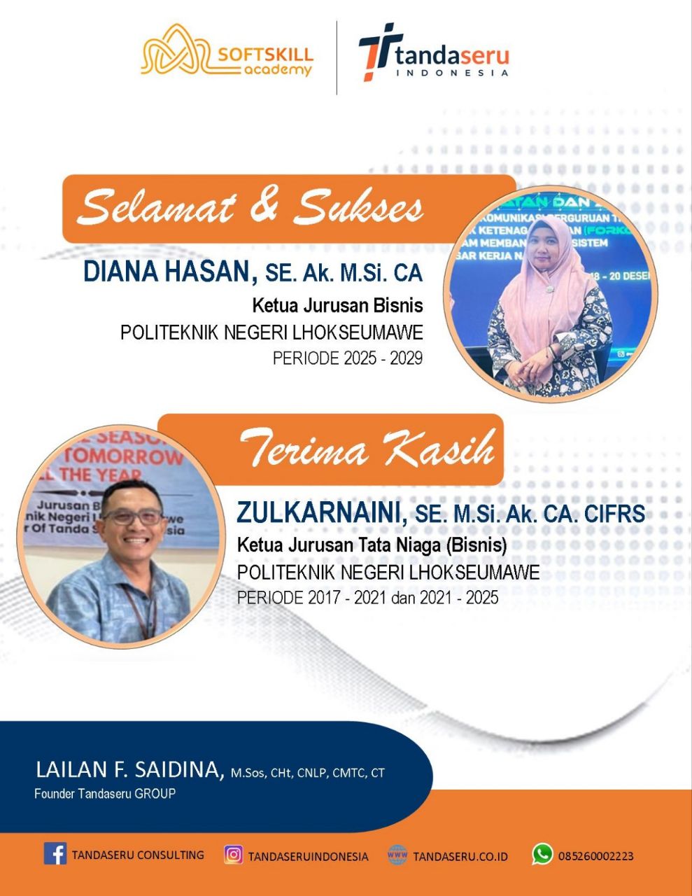 JALANTENGAH.CO I LHOKSEUMAWE – Ketua CDC Politeknik Negeri Lhokseumawe (PNL), Diana Hasan, SE. Ak. M.Si. CA ditetapkan sebagai Ketua Jurusan Bisnis PNL yang baru periode 2025-2029, menggantikan Zulkarnaini Hasan, SE. M.Si. Ak. CA. CIFRS yang telah berakhir masa jabatannya.
