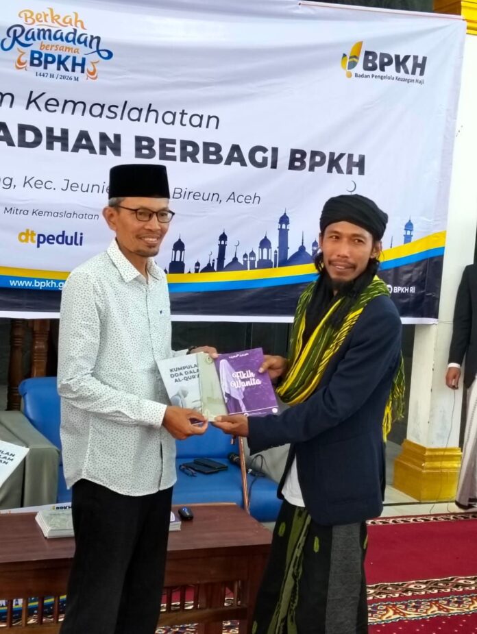 JALANTENGAH I BIREUEN – Santri yatim dari Dayah Rauhul Mudi Al-Aziziyah Jeunieb menunjukkan kontribusi kesantrian mereka dengan menerbitkan tiga buku bertema keislaman. Ketiga karya tersebut diperkenalkan dalam program kemaslahatan Ramadhan Berbagi BPKH yang digelar di kompleks Dayah Rauhul Mudi, Kecamatan Jeunieb, Kabupaten Bireuen, Kamis (5/3/2026).